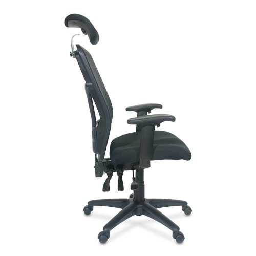 It has a swivel tilted seat, triangular arms, a tall tilted back.
